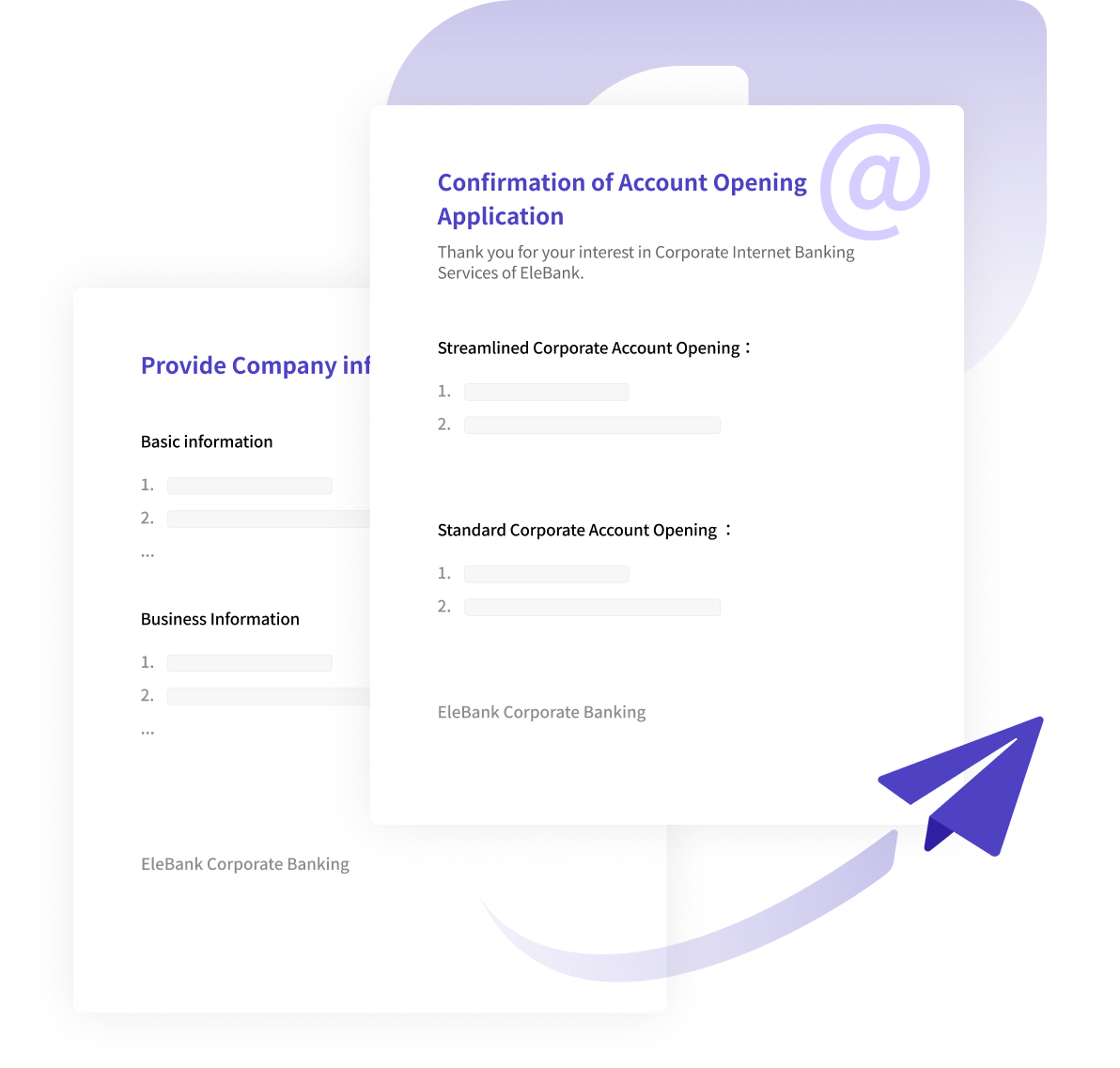 1.Applicable for Streamlined Corporate Account, Applicant and the connected parties must hold a personal banking account at EleBank.
