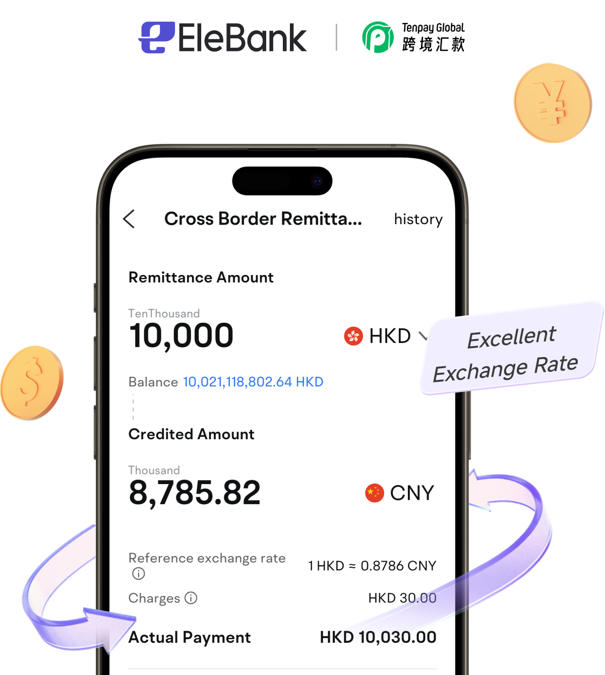 - 2.The services in relation to the remittance instructions you initiate through the EleBank app are provided by "WeRemit" (跨境汇款·微汇款), the official cross-border remittance platform under Tencent Financial Technology. Zhenxing Technology Co.,Ltd. ("Zhenxing") is a subsidiary of Tencent in Hong Kong. It participates in the operation of WeRemit (跨境汇款·微汇款) in Hong Kong and holds a money service operator license issued by Hong Kong Customs (licence number:20-09-02981).