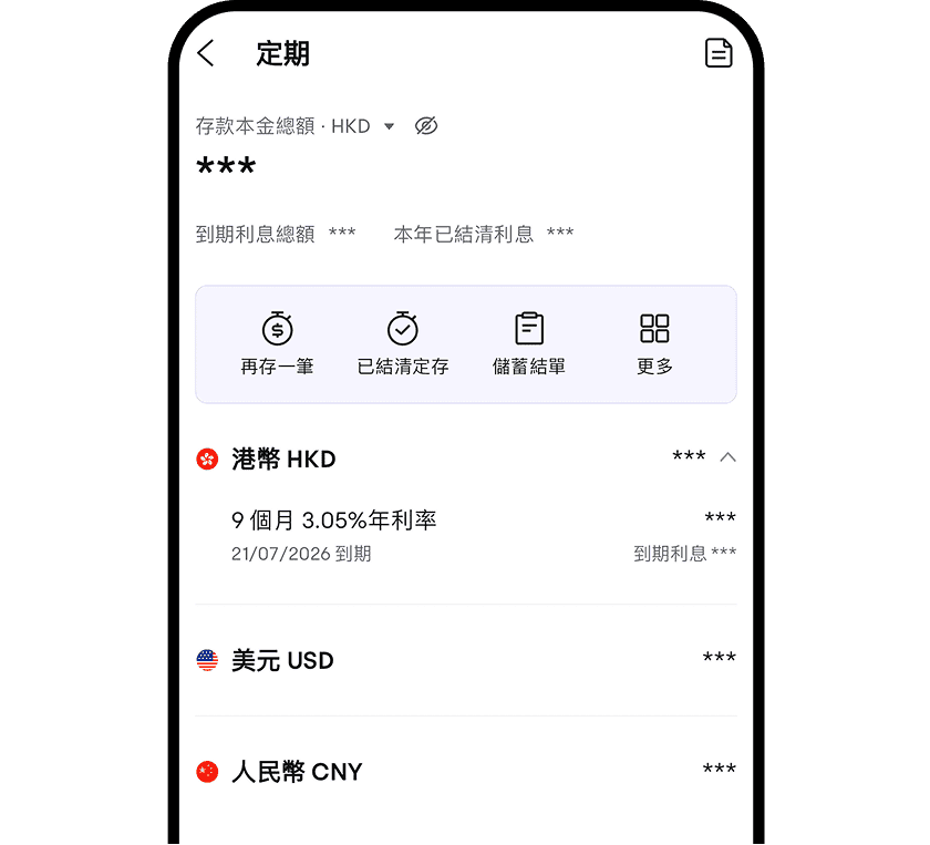 按此了解更多有關最新港幣及其他外幣的定期存款利率。