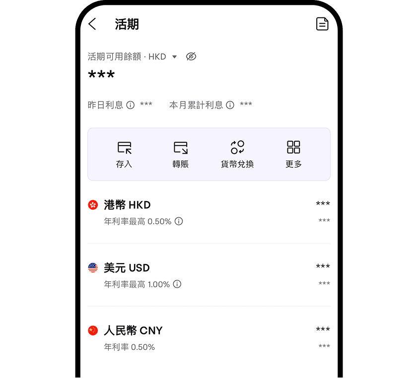 按此了解更多有關最新港幣及其他外幣的活期存款利率。
